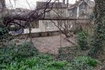 Terrain clos et arboré avec une terrasse.